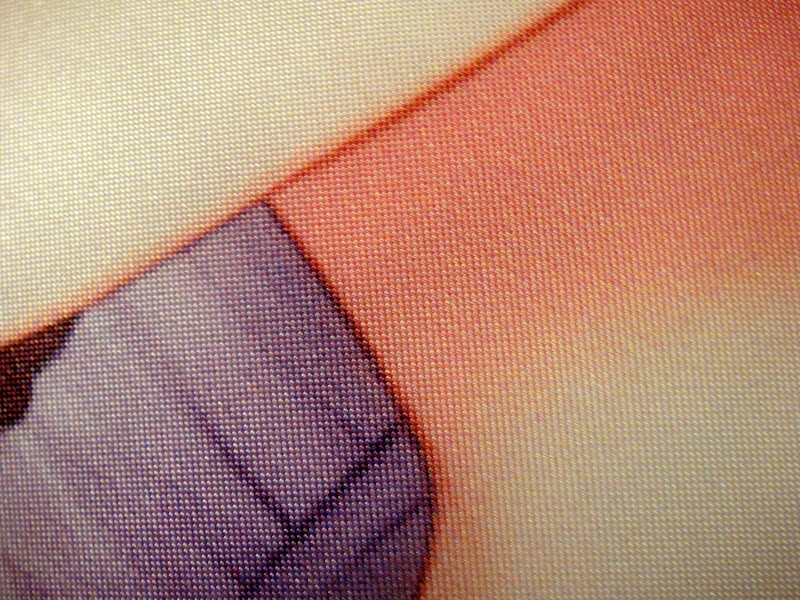 まずは生地のズーム写真から。生地の「目」は2WAYトリコットやスムースニットに比べて粗い感じ。しかし、コスパの「ツインエンジェル抱き枕カバー」よりは全然細かい。